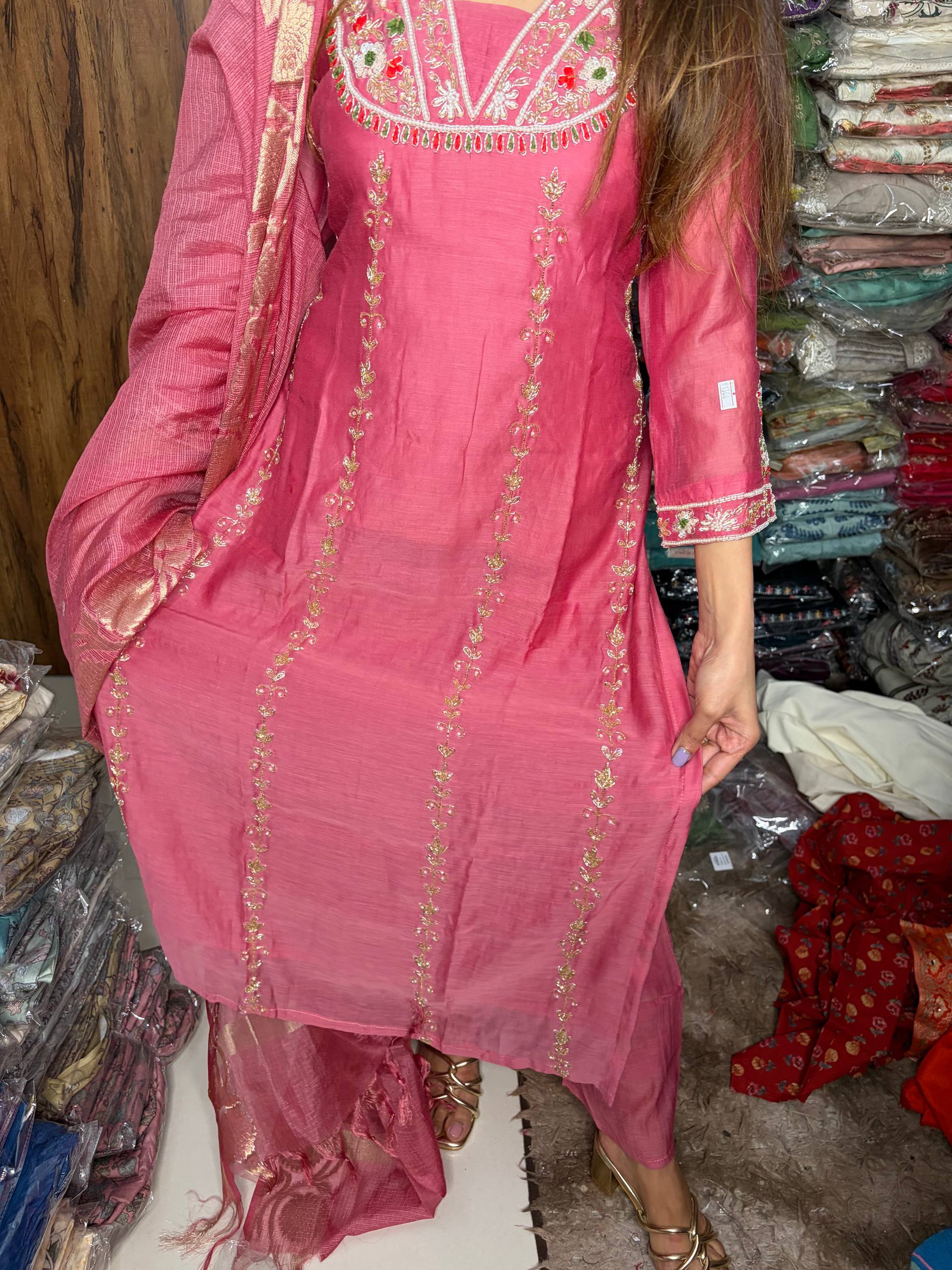Be the first to review “Blushy Pink Fabric Mull Chanderi”